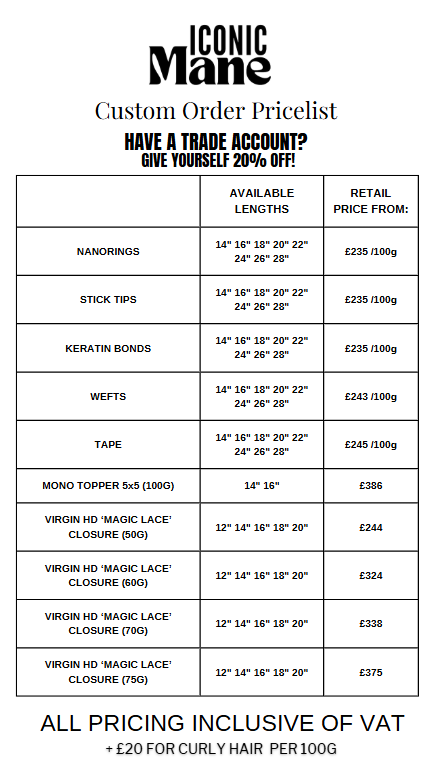 Contact our friendly team at info@iconicmane.com or use our website contact form to place a custom order.