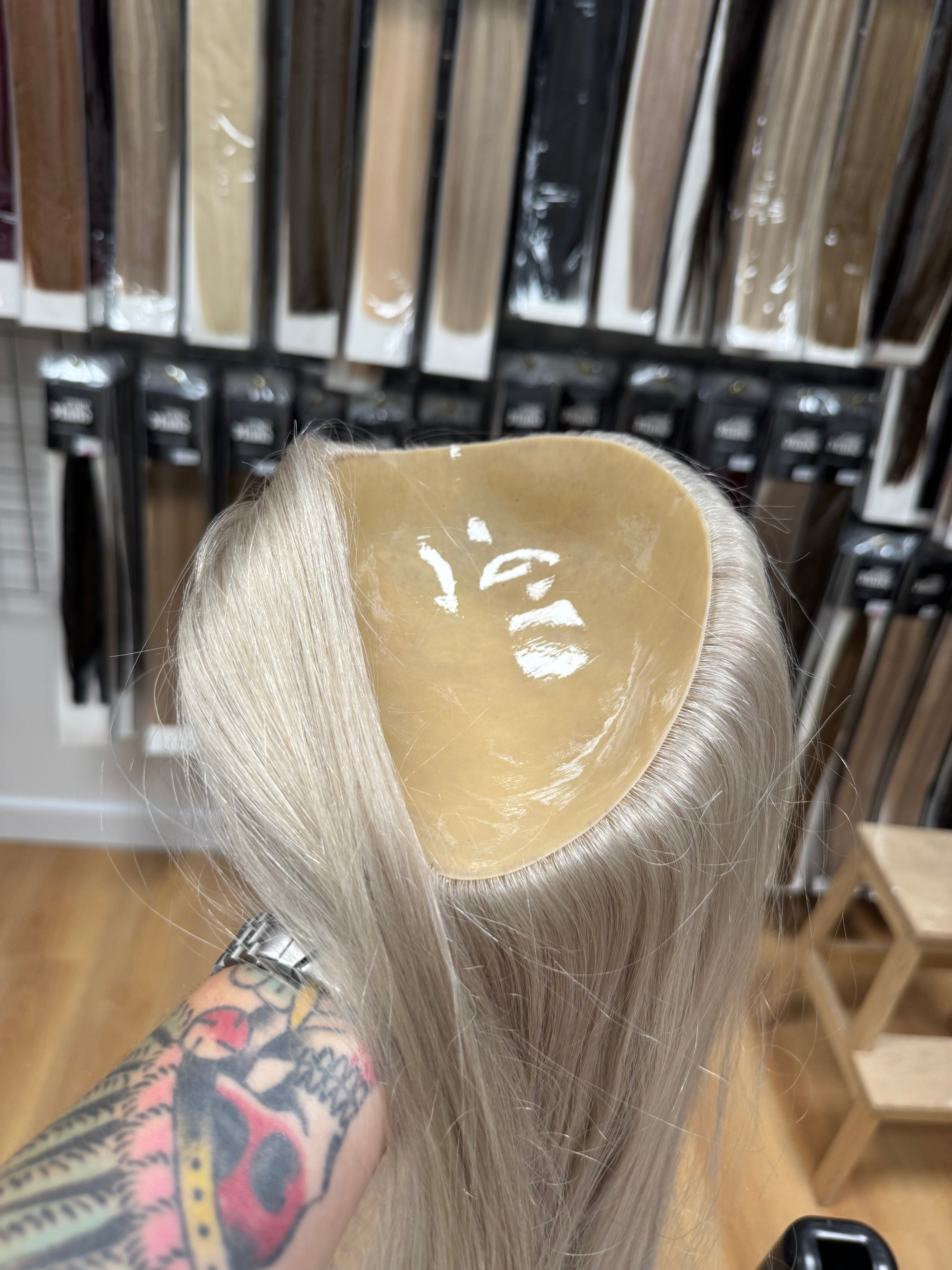 Iconic SKINN™️ is a poly-base hair system created to look and behave like natural scalp, offering the most seamless finish possible. Unlike traditional toppers or mesh systems, SKINN™️ gives clients: